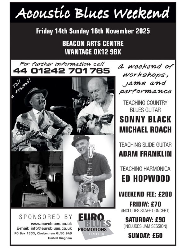 I’m talking about Euro Blues Weekend - an upcoming weekend of workshops, jamming and a concert that happens in Wantage, Oxfordshire, 14th -16th November.